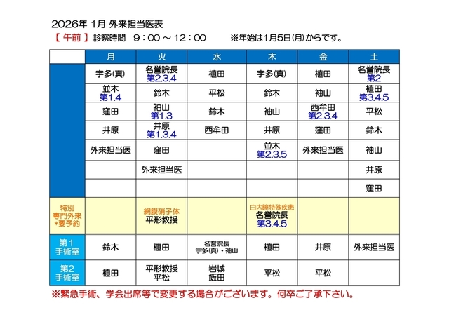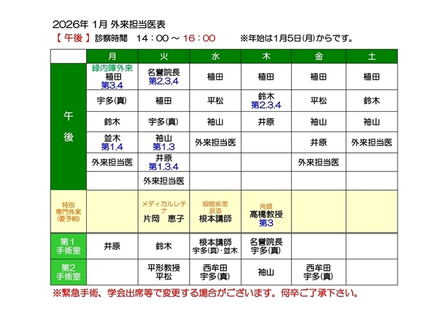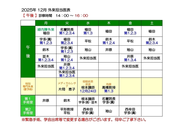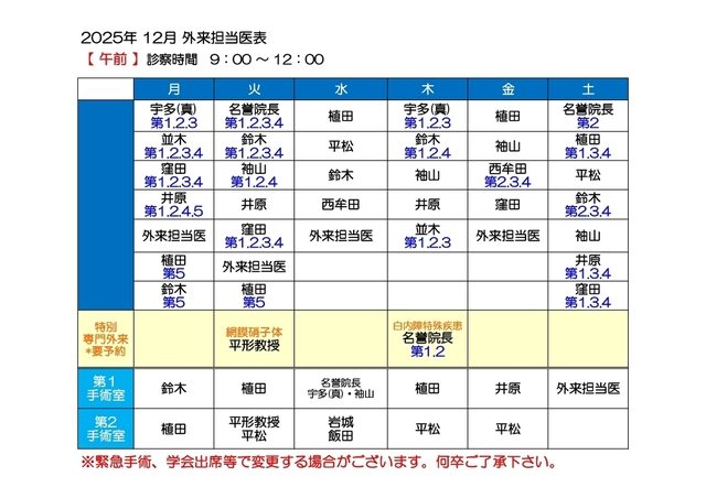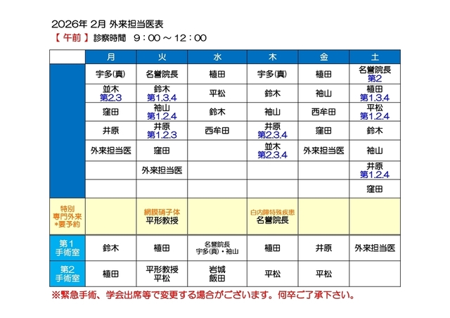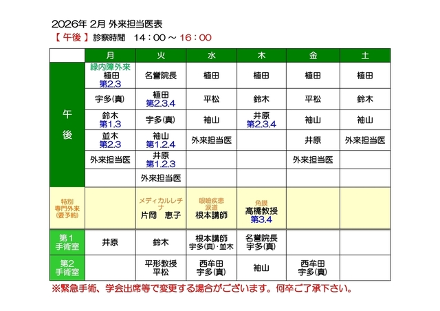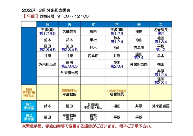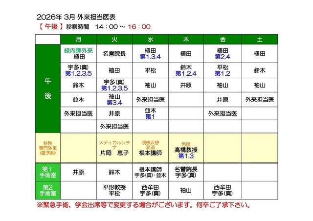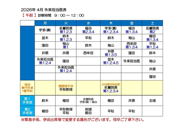 担当医表(午前・午後)